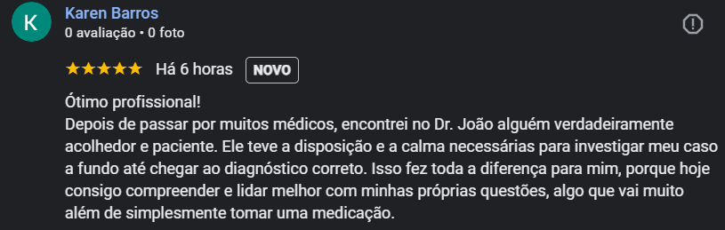 - Consulta longa, detalhada, com espaço para você falar e realmente ser escutado